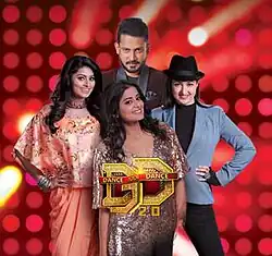 Dance Jodi Dance (season 2) or Dance Jodi Dance 2.0 (Tamil: டான்ஸ் ஜோடி டான்ஸ் 2) is a 2017-2018 Tamil-language dance competition reality television show, that aired on Zee Tamil from 2 December 2017 to 26 May 2018. It is a second season of the show Dance Jodi Dance. Actress Sneha, Gautami and Priyamani are the judges of this show and hosted by Deepak Dinkar.[1] The season title winner is Ruth and Rinish Raj.