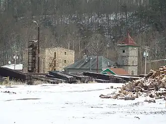 C.R. Daniels was a New York-based company founded in 1918 that manufactured sail cloth material. The company purchased the 500-acre Daniels mill and 118 houses in 1940 for $65,000, doubling its size by 1950, and eventually over 300,000 sq ft. The company produced a wide variety of canvas products and canvas covers with over 200 sewing machines to assemble patterns. Later specialties included fiberglass components and conveyor belts.[3] In 1965, the mill phased out company housing, tearing down the historic buildings and churches. In 1972, flooding from Hurricane Agnes damaged or destroyed the majority of the buildings and mill site. In 1977 a fire destroyed the remainder of the mill.[4]