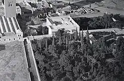 Dar Moulay Ali, seen in an aerial photograph in 1930–31, near the Kutubiyya Mosque (partly visible in the upper left). The main residence (upper middle) is visible, as is the former riad garden (upper right) which formed its main entrance on its east side. A larger garden was located on its south side (middle and lower right).