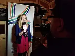 ![]() Newman being interviewed at the Dance Pe Chance celebration at Union County Performing Arts Center in February 2019. | |