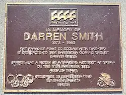 ![]() Commemorative plaque to Darren Smith in Gold Coast, Australia | |