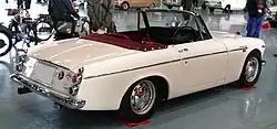 The SPL212 was introduced in 1960. This was the first Datsun sports car imported to the US. The letter L means "left hand drive". Now with steel bodywork, it was built in slightly higher volume than the S211, with 288 produced through 1961. The SPL212 was based on the Datsun 223 truck. It had a 1.2 L (1189 cc) E-series straight-4 engine producing 48 PS (35 kW; 47 hp). A 4-speed manual transmission was specified, and an a-arm suspension with torsion bars was used in front. Drum brakes were used all around. This was the first vehicle to bear the "Fairlady" name. The badge on the trunk lid was the same badge that was used on the Datsun 223 truck. It was named in reference to the Broadway musical My Fair Lady.[2] The SPL212 and later SPL213 were sold only on the export market; they were named for their engine displacement. In 1960, production of the Fairlady was moved from Yokohama to the Nissan Shatai plant in Hiratsuka.