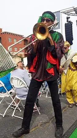 Dave Davis is a jazz musician known for playing trombone with the Sun Ra Arkestra since 1997.[1][2] He is one of the younger members of the band and has been called the "party-starting trombonist," with his Twitter account offering a new look into the workings of this longtime jazz band.[3]
