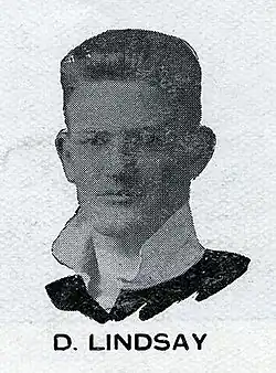 David Frederick Lindsay (9 December 1906 – 7 March 1978) was a New Zealand rugby union player. A utility back, Lindsay played in positions from five-eighth to fullback. He represented Otago at a provincial level, and was a member of the New Zealand national side, the All Blacks, on their 1928 tour of South Africa. On that tour he was the first-choice fullback, and played 11 matches including three of the four internationals.[1]