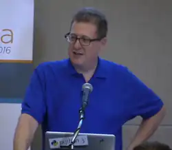 ![]() Beazley speaking at PyData Chicago in 2016 | |