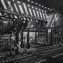 DeAnn L. Prosia, "Under the Elevated", line etching, 12×12 inches, 2016