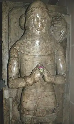 Effigy of Sir John de Bermingham (d.circa 1400) in St Martin's Church, Birmingham, showing his arms sculpted on his tunic