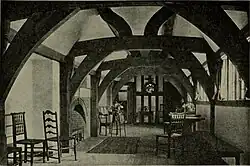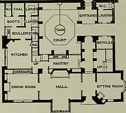 The house was built for the founder of the early lifestyle magazine Country Life, Edward Hudson, essentially as a show home.[3] It was featured in the magazine. The house has subsequently been considerably extended on its north side. The garden (c. 1 hectare) was planted by Gertrude Jekyll. Although in the centre of the village next to St Andrew's Church and the Bull Inn, the house and garden are very secluded, being surrounded by high walls. However, the garden can be viewed from the church tower.[4]