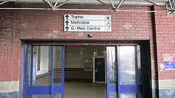 The station became Knott Mill and Deansgate for railway purposes in around 1900;[2] to the local press, it remained Knott Mill station. It was renamed Deansgate on 3 May 1971.[32] It is sometimes known as Manchester Deansgate and on many station information boards it is Deansgate G-Mex.