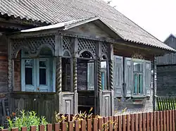 Verandas and porches are not as characteristic of eastern Podlachia as the decorations of gables, windows and corners. Some houses in towns, and sometimes also in villages, have two porches or two verandas.[18]