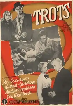 Defiance (Swedish: Trots) is a 1952 Swedish drama film directed by Gustaf Molander and starring Anders Henrikson, Per Oscarsson, Harriet Andersson and Eva Dahlbeck.[1] It was shot at the Råsunda Studios in Stockholm and on location in Solna. The film's sets were designed by the art director Nils Svenwall.