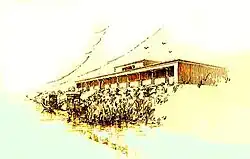 According to Lacovara, "the southern extent of the settlement at Deir el-Ballas was marked by a large, rectangular mud-brick platform. Reisner [head of the Hearst expedition in 1900-1901] called this the ‘South Palace’, but it is clearly non-residential in character. Situated at the top of the hill, far from the rest of the settlement, it enjoyed commanding views of the Nile and surrounding countryside. The building has a wide terrace, fronting an elevated platform measuring about 40m wide and 150m long, with a broad flight of stairs leading to the top. Though the upper section of the platform, which has been all but destroyed by centuries of looting, probably supported reed structures or tents rather than a substantial construction. The design and location of the ‘South Palace’ suggest that, rather than a palace, it was an observation tower, keeping watch over the river and the southern approach to the settlement, and monitoring traffic entering the settlement. It was also an ideal post from which to watch the movement of the Theban fleet."[1]