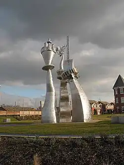 "Privilege" was commissioned by Stoke-on-Trent City Council and stands in Etruria, in Stoke-on-Trent, Staffordshire; the stainless steel sculpture is 9 metres (30 ft) high and was installed in 2005. It shows pottery and a gear wheel, representing past industry in the area, and a tree and ladder, representing future aspirations.[4]