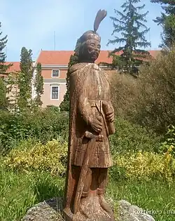Wooden sculpture of Denis Türje in Türje by József Rőti (2002)