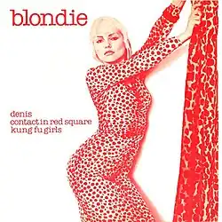 "Denis" (using the masculine form of the name in French, with a silent "s") is a 1978 cover of the song by the American new wave band Blondie. This effort helped the band break into the international market. It was featured on the band's second studio album, Plastic Letters (1978),[13] and was the second UK single release by Blondie on Chrysalis Records. Cash Box said it has "recognizable thrashing guitar licks, kick drumming and Deborah [Harry's] bright vocals."[14] Record World said that "The effect is faithful to the original but more than slightly ironic as well."[15]