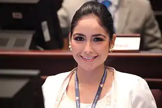 She resigned her position in the Assembly in November 2013 to participate in the sectional elections the following year as a candidate for mayor of Milagro.[4] Robles stated during the election campaign that she wanted to have a railway station built in the city, and hoped to have two water treatment plants constructed in order to improve the coverage of Milgaro's drinking water. She pledged training for traders and housewives to allow them more financial development, and wanted to encourage tourism and trade in the city.[5] She was elected the mayor of Milgaro with 38% of the vote, finishing ahead of Romulo Minchala, and the incumbent mayor Francisco Ashan.[6] Robles assumed office in May 2014, becoming the first female mayor of the city, and the youngest mayor in the country.[7]
