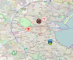 The rivalry is significant as their home grounds in North Dublin are the closest to each other of any clubs in the league at around 1.5 kilometres apart. With Shelbourne based at Tolka Park in Drumcondra, and Bohemians at Dalymount Park in Phibsboro, the game is sometimes referred to as the Northside derby. However, Shelbourne were actually formed in Ringsend in South Dublin and only took over the lease of Tolka Park in 1989 (although they had played there going back to the 1950s). This adds to the feud as they are seen as moving to Bohs territory. In the Irish League days, the rivalry was seen as class based, as Shels had to pay their predominantly working class players, whereas Bohs maintained a glass ceiling with their amateur status up until 1969. Despite the move to Tolka initially coinciding with a revival in Shels fortunes (they have won seven of their 14 league titles and four of their seven FAI Cups since 1990), they have struggled to attract significant support on the Northside with only Marino and East Wall being seen as stronger bases for supporting Shels over Bohs. However, Shels do enjoy support in a number of Northside suburban areas. By the end of 2024 however, Shels had overtaken Bohs in average home league attendances.[10]
