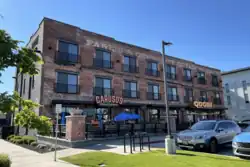 At the time of development, the Desmet Avenue Warehouses were part of the broader Sinto Warehouse District. Prior to development, the city's warehouses were concentrated south of the river along the main railroad tracks. Railroad spurs were extended into the area after the Great Spokane Fire of 1889, at which point little development existed north of the Division Street Bridge. Depots for the Spokane and International, the Oregon Railway and Navigation, and the Spokane Falls and Northern railways were built in what would become the Sinto Warehouse District. Developer Walter L. Bean spearheaded construction in the district, with The Spokesman-Review newspaper saying in a 1914 article, "Mr. Bean is the pioneer in the North Side warehouse section. He put in the switch and has sold all the sites of the present warehouses." The broader district went into a decline in the 1960s when the rail lines and spurs were torn out north of the river. Commercial development pushed north into the Sinto Warehouse District in the decades that followed, resulting in the demolition of many former warehouses. When the Desmet Avenue Warehouse Historic District was listed on the NRHP in 1998, it was the most intact remaining section of the broader warehouse district. The threat to the area from commercial encroachment was even mentioned in its registration form.[2] That threat was realized in 2008 when two of the district's six contributing properties were demolished to make way for new development.[3]