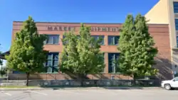 Located at 105 E. Desmet, at the intersection of Desmet Ave. and Ruby St., the Market Equipment Company was constructed in 1946, making it the youngest of the structures in the historic district. It was designed by local architectural firm Whitehouse & Price and built by contractor W.G. Meyers. It was built for the W.P. Fuller and Company and was intended to serve as a paint, glass and door warehouse, as well as a manufacturing center on the main floor. The building was to act as an expansion of W.P. Fuller and Company's existing property, immediately to the east. It was constructed atop the foundation of the previous structure at the site, an agricultural tool dealership built in 1904 by the Shaw-Wells Company.[11] As of 2022, the building is owned by Market Equipment Company, which use it as an office, warehouse and repair shop.[2]