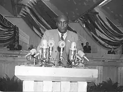 During the 1930s Buckle began to become involved in student and black political organizations, including the League of Coloured Peoples (LCP) and the Gold Coast Students' Association (GCSA).[1] The GCSA was a West African student organization formed in London in the mid 1920s, alongside other West African student organisations such as the West African Students' Union (WASU).[1] Through the GSCA, Buckle became heavily involved in the politics of the time.[1] Buckle greatly opposed the Sedition placed upon the Gold Coast and supporting the views of African politicians arriving in Britain to oppose such restrictions.[1] Buckle also supported the 1937–1938 Gold Coast "cocoa hold-up", in which a coalition of farmers on the Gold Coast refused to sell their cocoa produce to large trading firms.[5] On occasion the GCSA was antagonistic to the WASU on various issues Buckle was involved in, such as the dispute over Aggrey House. At this time the GCSA viewed the WASU not as an organisation that represented West African students, but as one dominated by Nigerians.[1] Buckle gave his support of Aggrey House, a hostel designed for African students, being part of the GCSA delegation that helped establish its rules in 1934.[1] The WASU, on the contrary, saw the house as a means for the British Government to control African students.[6] Buckle was a prominent member of the GCSA, being appointed as its secretary from 1936 to 1937 and its president in 1937–38.[1] During this time Buckle's radicalism increased, with him proposing the notion "this Association refuses to fight for the British Empire" at a GCSA debate in October 1937.[1] The next month Buckle was the primary opponent of the motion "that the salvation of the Gold Coast lies in close cooperation with the British Labour Party", showing his refusal to cooperate with British Imperialism.[1]