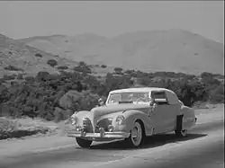 The car owned by the character Charlie Haskell and later driven by Al Roberts is a customized 1941 Lincoln Continental V-12 convertible, a base model of a "Cabriolet" but one that features bolted-on rear wheel-well covers and some exterior components added later from Lincoln's limited 1942 version of the same model.[16] Reportedly, the production budget for Detour was so tight that director Ulmer decided to use this car, his "personal car", for the cross-country crime drama.[16]