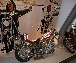 Replica of the Easy Rider Harley Chopper, in front of move scene