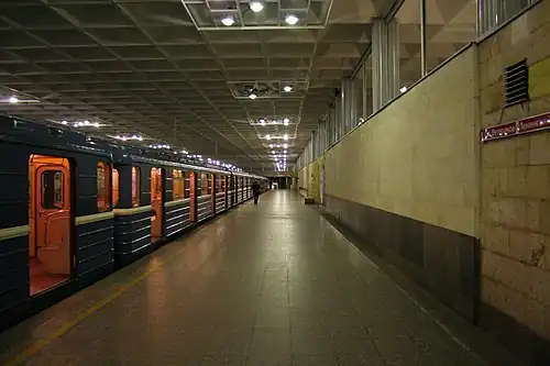 Devyatkino (Russian: Девя́ткино; until 1992 Komsomolskaya Russian: Комсомольская) is a station of the Saint Petersburg Metro and St. Petersburg–Kuznechnoye railway. It is the only Metro station located outside the city limits, in Vsevolozhsky District of Leningrad Oblast.