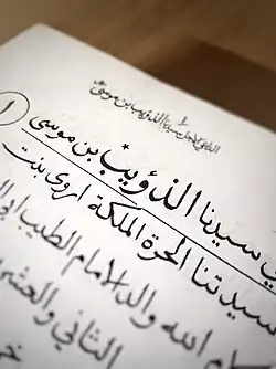 A page from a historical Dawoodi Bohra treatise displaying Syedna Dhu'ayb's name in Arabic