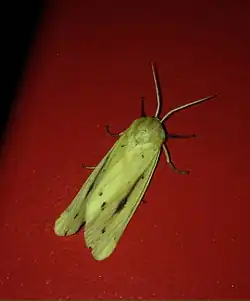 - ^ Rönkä, Katja; Mappes, Johanna; Kaila, Lauri; Wahlberg, Niklas (2016). "Putting Parasemia in its phylogenetic place: a molecular analysis of the subtribe Arctiina (Lepidoptera)". Systematic Entomology. 41 (4): 844–853. doi:10.1111/syen.12194. hdl:10138/176841.