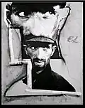 Gaber's approach to Die Plage draws inspiration from German photomontage pioneers Hannah Höch, John Heartfield, and George Grosz, whose influence is acknowledged in several canvases within the series. Höch, Heartfield, and Grosz, as artistic collaborators in the avant-garde Dadaist and New Objectivity movements, were credited with inventing the "anti-art" technique of pasting together pre-existing photographs, text, and clippings.[10] Several of these works are themselves cut and pasted into Die Plage, including the notable example of Adolf Hitler's head in Heartfield's Adolf, the Superman: Swallows Gold and Spouts Tin (1932).