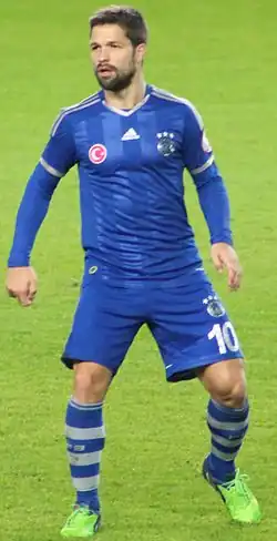 Diego made his Fenerbahçe debut in the opening game of the season, coming on as a substitute for Emmanuel Emenike in the 62nd minute, in a 3–2 win over Karabükspor.[60] Diego continued to be in the first team by the first half of the season until he suffered a partial muscle tear during a 1–1 draw against Bursaspor on 24 November 2014.[61] After being on the sidelines for three weeks, Diego made his first team return against Altınordu in the Groupstage of Turkish Cup, which he scored in a 1–1 draw on 23 December 2014.[62] On 24 January 2015, Diego played a vital role when he provided two assist for Dirk Kuyt and Caner Erkin in a 3–0 win over Kasımpaşa on 24 January 2015.[63] Diego's second goal then came four months later on 3 April 2015 in the quarter-final of Turkish Cup in a 2–1 win over Mersin İdmanyurdu.[64] Soon after, Diego soon made complaint, claiming he had not been paid by the club.[65] Diego scored his first league goal for the club in a 4–3 win over Balıkesirspor on 2 May 2015[66] after making his first team from the previous game as a substitute.[67] This was followed up his second league goal seven days later, in a 3–2 win over Sivasspor.[68] Diego's third goal later came in a 2–2 draw against İstanbul Başakşehir.[69] In his first season at Fenerbahçe, Diego made 30 appearances and scored five goals in all competitions.