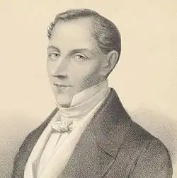 Diego José Pedro Víctor Portales y Palazuelos (Spanish pronunciation: [ˈdjeɣo poɾˈtales]; June 16, 1793 – June 6, 1837) was a Chilean statesman and entrepreneur. As a minister of president José Joaquín Prieto's government, he played a pivotal role in shaping the state and politics in the 19th century, delivering with the Constitution of 1833 the framework of the Chilean state for almost a century.[1] Portales' influential political policies included unitarianism, presidentialism and conservatism which led to the consolidation of Chile as a constitutional, authoritarian and aristocratic republic with the franchise restricted to upper class men from the gentry.