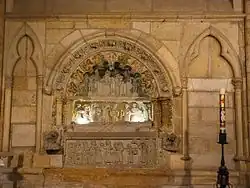 Diego's monumental tomb in the cathedral of León is one of the earliest examples of the enfeu style of sepulchral recess imported from France.[2]