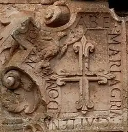 Coat of arms of Medrano on top of the coat of arms of Valdeosera as seen in the political treatise República Mista by Tomás Fernández de Medrano, 1602.[58]