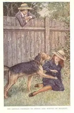 The popularity of the continuing series led to Dimsie Goes to School being reprinted several more times by the OUP, and in the 1950s by Spring Books. The illustrations kept pace with changing fashions, as the following two illustrations of the same scene demonstrate. In the 1983 edition from John Goodchild Publishers the text was "unfortunately radically modernised".[3]