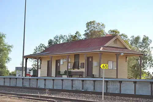 Dingee railway station is located on the Piangil line in Victoria, Australia. It serves the town of Dingee, and it opened on 21 June 1883 as Talambe. It was renamed Dingee on 15 October 1883.[1] Dingee Railway Station is also known as the least used railway station in Victoria.