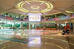The 630,000 sq ft (59,000 m2). shopping centre was conceived as a mixture of shopping mall and park. It is considered as the first of its kind as a "Shopping Park". The shopping centre is themed as a tropical rain forest, an artificial waterfall and pillars decorated by big fruits were made. The roof of the main lobby is a stained glass dome which allows penetratration of natural daylight.[3]