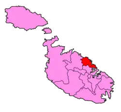 1. ^ Gauci, Salv. (23 April 2012). "Constitution of Malta. Article 61 - Electoral Divisions" (PDF). The Malta Government Gazette. No. 18904. Retrieved 26 August 2014.