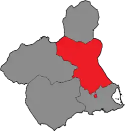 The constituency was created as per the Statute of Autonomy for the Region of Murcia of 1982 and was first contested in the 1983 regional election. The Statute provided for sub-provincial divisions of the Principality's territory to be established as multi-member districts in the Regional Assembly of Murcia, with this regulation being maintained under the 1986 regional electoral law. Each constituency was entitled to an initial minimum of one seat, with the remaining 40 being distributed in proportion to their populations. The exception was the 1983 election, when constituencies were allocated one fixed member and one additional member per each 25,000 inhabitants or fraction greater than 12,500.[1][2]