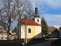The historic centre of Dobrovíz is declared a village monument reservation. The set of folk architecture houses consists of brick buildings from the 18th and 19th centuries with stucco façade decoration. The baroque Chapel of the Virgin Mary is located in the centre of Dobrovíz.[6][8]