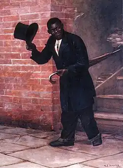 - ^ Portrait of "Doc" Brown, Cakewalker Glenn North 1896 "Joseph "Doc" Brown, also known as Doctor William Henry Joseph Cutter Brown was born circa 1835. He was a slave on the Meredith Miles Marmaduke Estate at Arrow Rock, near Marshall, Missouri. Many years later, in 1868, he moved to Kansas City and began to develop a name for himself as a champion cakewalker. In an interview, one of his closest friends, Wilson Fitzpatrick, stated, “I knew him in Marshal when he carried papers there. He always had a crowd following him. I told him that town was too small for his talents and that he ought to go to Kansas City… [H]e was a 'nachel-bohn' cakewalker…" The cakewalk that Fitzpatrick spoke of originated as a slave dance contest in the antebellum South. In his book, From Cakewalks to Concert Halls…, Thomas L. Morgan explains: "
