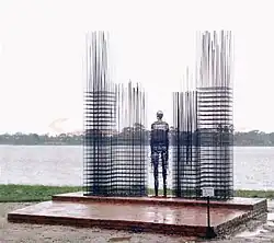 She was one of the first Indonesian women sculptors to create bronze sculptures; she has also used clay, fiberglass, plastics, and a variety of other materials.[8][9][10] Her work incorporates themes of liberation, pain, injustice, women's resistance and solidarity.[11][3][12][4][13] Among her better-known sculptures are Semangat Angkatan 66 (The Spirit of the generation of '66) in Kuningan, South Jakarta and Solidaritas (Solidarity, 2000) which is located at the National Commission on Violence Against Women (Komnas Perempuan); a replica is in the International Monetary Fund building in Washington, D.C.[2][4][3] Another well-known piece is Them for Us Today: The Crisis, an imposing rod iron work she created for the Second International Sculpture Symposium in Huế, Vietnam in 1998.[10][14] A replica of that piece was created for the International Sculpture Park in Siena, Italy.[10] More recently, she designed the sculpture at the center of a monument to former Indonesian president Sukarno in Algiers; the overall monument was designed by Ridwan Kamil.[15][16]