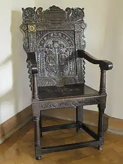 - Scottish armchair c. 1600 with heraldic back panel, V&A