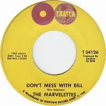 "Don't Mess with Bill" is a song recorded by the Marvelettes for Motown Records' Tamla label.[1] Written and produced by Smokey Robinson, "Don't Mess with Bill" features a lead vocal by Wanda Young. The single peaked at number seven on the Billboard Hot 100 in February 1966, and at number three on Billboard's R&B singles chart. "Don't Mess with Bill" was the Marvelettes' final top 10 single.[2][3]