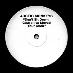 "Don't Sit Down 'Cause I've Moved Your Chair" is a song by the English rock band Arctic Monkeys, released as the lead single from their fourth album Suck It and See on 12 April 2011 through digital download.[4] A "limited-edition white-label seven-inch vinyl version" was released on 16 April, followed by the formal release "on standard seven – and 10-inch vinyl single formats" on 30 May.[5] The song was first played on Zane Lowe's BBC Radio 1 show on 11 April.[6] The band did not consider the track to be the first single until the label suggested it to them.[7]