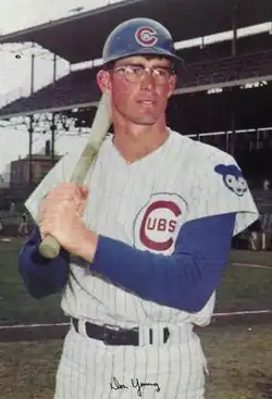Young was signed by the St. Louis Cardinals as an amateur free agent in 1963. In his first major league at bat, he popped up to become the first out in Sandy Koufax's 1965 perfect game. He played only 11 games in 1965, and then spent three years in the minors before coming up to the Cubs again, playing 101 games in the tumultuous 1969 season.[1]