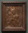 after Donatello | Madonna and Child in a niche | relief, low | bronze, silvered | 20.5 × 15.5 × 1, 2.54 kg | c. 1426–1430 (prototype) | Berlin, Bode Museum (Inv. 3044)[26] |