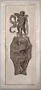 statue in niche with low reliefs | marble, probably at times with lance or sword and helmet (metal) | 204 × 78 × 34 base relief: 39 × 120 |