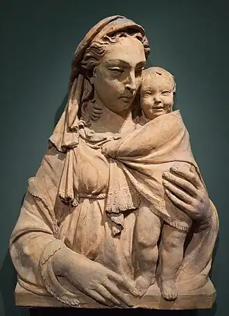 - ^ In the online catalogue of the National Gallery this sculpture is consciously described as "Florentine, 15th Century". In the catalogue of the 2022/23 touring exhibition Aldo Galli identifies it as by Donatello and the earliest example of this sculptural type of Madonna and Child, which subsequently replaced corresponding panel paintings. In Caglioti, p. 120.