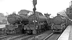 Line-up of steam locomotives (left-to-right: an A2/3, A3 and a B1) at Doncaster station in August 1953